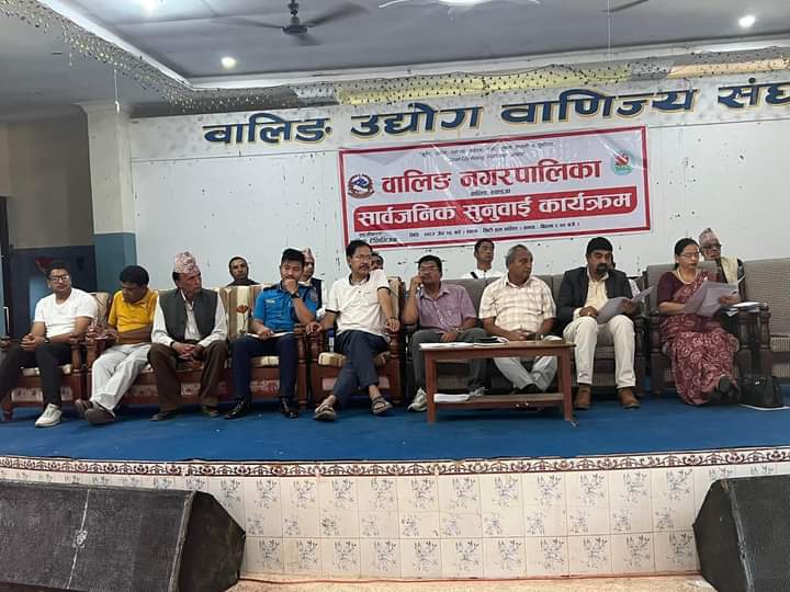 स्याङ्जाको वालिङ नगरपालिकाले सार्वजनिक सुनुवाई गरेको छ । नगरपालिकाले “कृषि, उद्योग, पर्यटन, उर्जा, सूचना प्रणाली र पूर्वाधार स्मार्टसिटी वालिङ निर्माणको आधार” भन्ने नारासहित शुक्रबार सार्वजनिक सुनुवाई गरेको हो । यो वर्ष नगरपालिकाले गरेका विकास निर्माण सम्बन्धी जानकारीसहित नगरबासीको गुनासा, सुझाव तथा सल्लाह लिने उद्देश्यले सार्वजनिक सुनुवाई गरिएको हो । कार्यक्रममा नगरपालिकाका प्रमुख प्रशासकीय अधिकृत तेजराज शर्माद्वारा सेवा प्रवाहकाबारेमा जानकारी गराएपछि सहभागीहरुलाई समय दिइएको थियो ।