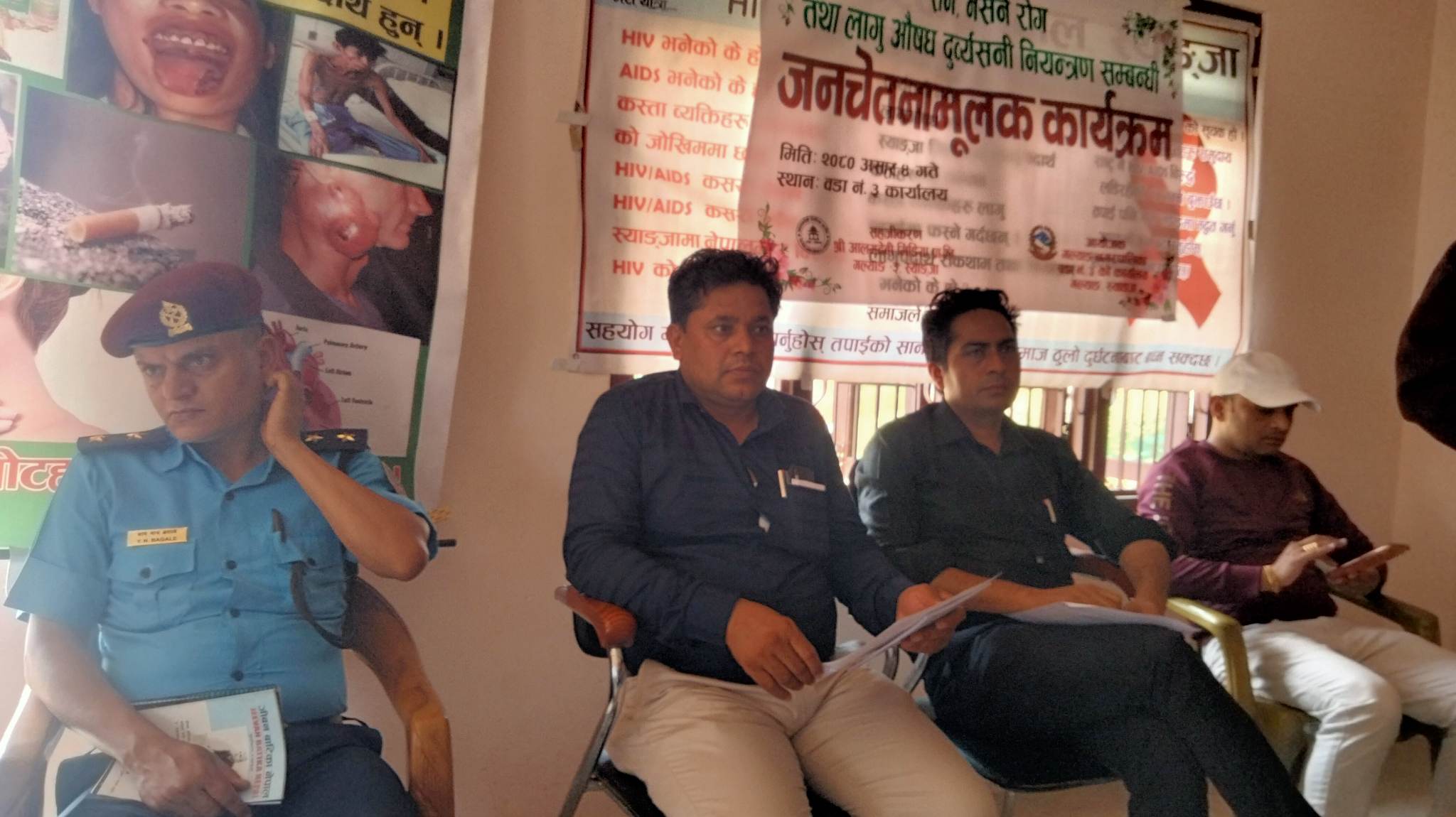 गल्याङ नगरपालिकाका नगर प्रमुख गुरुप्रसाद भट्टराई समाजमा लागु औषधको विकृति लुकेर रहेको हुनसक्छ त्यसको न्यूनिकरणका लागि नगरभरी नै यस्ता कार्यक्रम सञ्चालन गर्न आवश्यक रहेको बताउनुभएको छ । सोमबार स्याङ्जाको गल्याङ नगरपालिका वडा नं.३ को आर्थिक सहयोग र आलमदेवी मिडिया प्रा.लिको सहजीकरणमा आयोजित सर्ने, नसर्ने तथा लागू औषध दुब्र्यसनी नियन्त्रण सम्बन्धी जनचेतनामूलक कार्यक्रमको उद्घाटन गर्नुहुँदै उहाँले हाम्रो मानव जीवन विभिन्न रोग तथा लागु पदार्थ सेवनकाकारण बर्बाद हुनसक्छ त्यसैले यो महत्वपूर्ण मानव जीवनलाई सही मार्गमा हिंडाउन यस्ता कार्यक्रम गाउँ टोलमा सञ्चालन गर्न आवश्यक भएको बताउनुभयो । उहाँले भन्नुभयो, मानिस दुब्र्यसनमा फसेपछि पुनः पहिलेकै अवस्थामा फकाउन नसकिने र अन्त्यम आत्महत्या गर्नसम्म पछि नपर्ने भएकाले यस्ता अभियानले मानव जीवनको रक्षा गर्ने पक्षमा टेवा पुग्ने बताउदै वडा नं.३ ले रचनात्मक कार्य गरेको बताउनुभयो ।