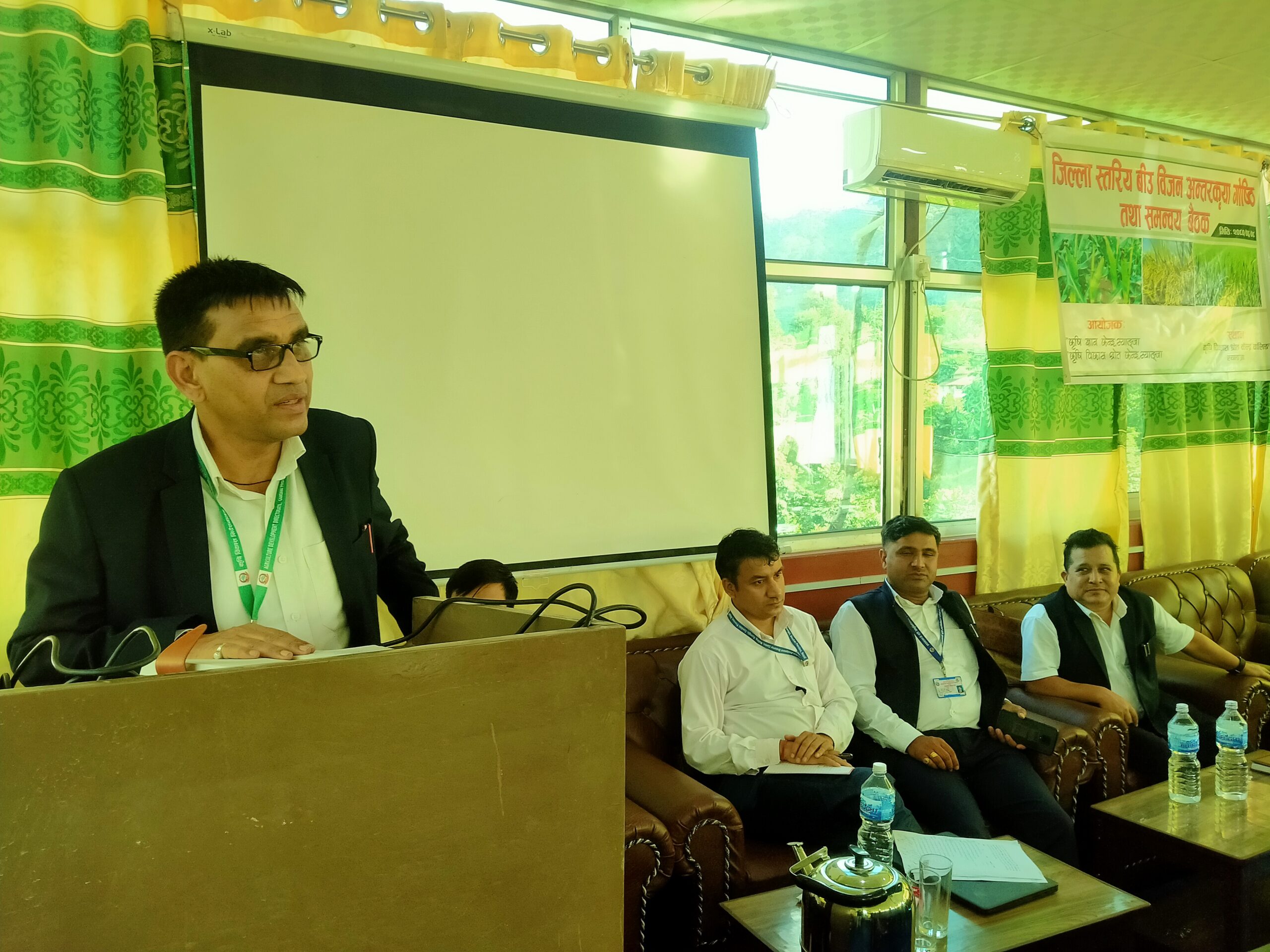 जिल्ला स्तरीय बीउ विजन अन्र्तक्रिया गोष्ठी तथा समन्वय बैठक वालिङमा सम्पन्न भएको छ । कृषि ज्ञान केन्द्र स्याङ्जा र कृषि विकास स्रोत केन्द्र स्याङ्जाको आयोजनामा सोमबार वालिङमा रहेको कृषि विकास श्रोत केन्द्र वालिङमा गोष्ठी गरिएको हो । कार्यक्रममा कृषि निर्देशनालय गण्डकी प्रदेशका कृषि महानिर्देशक बासुदेव रेग्मीले बीउको गुणस्तरियतामा जोड दिन आग्रह गर्दै आयात घटाउँदै निर्यात बढाउनुपर्ने बताउनुभयो । राम्रा जातको बीउ उत्पादनमा जोड दिँदै महानिर्देशक रेग्मीले गुणस्तरीय बीउ उत्पादन गरी यहाँबाट निर्यात बढाउनका लागि जिल्ला र प्रदेशले सहयोग गर्ने बताउनुभयो ।