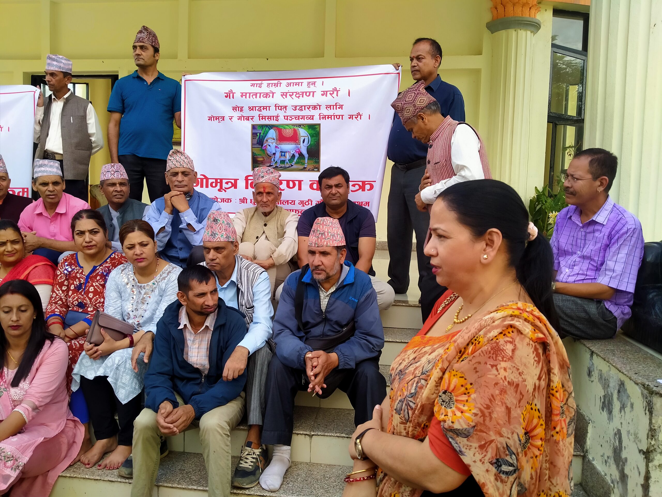 पछिल्लो समय घर–घरमा गाई पाल्न छाडेकाले पितृ कार्यहरुमा शुद्धाशुद्धिकालागि पनि गाईको मुत्र र गोबर अत्यावश्यक हुने भएकाले गौशालाबाट बजारका टोल टोलमा गौमुत्र वितरण गरिएको विश्व हिन्दु महासंघका केन्द्रीय सदस्य पण्डित नेत्रप्रसाद पराजुलीले बताउनुभयो । “हिन्दु संस्कार अनुसार धार्मिक कार्यहरुमा गाईको महत्व छ, गौमुत्र, गोबरको उत्तिकै महत्व छ” उहाँले भन्नुभयो, “पर्सी शनिबारदेखि आफ्ना दिवंगत पितृहरुको स्मरणमा सोह« दिनसम्म श्रद्धा र सम्मानस्वरुप श्राद्ध गर्ने परम्परा रहेको छ तर गाईको मुत्र र गोबर सहजरुपमा नपाईने भएकाले टोल टोलमै लगेर ईच्छुकहरुलाई वितरण गरेका हौं ।”